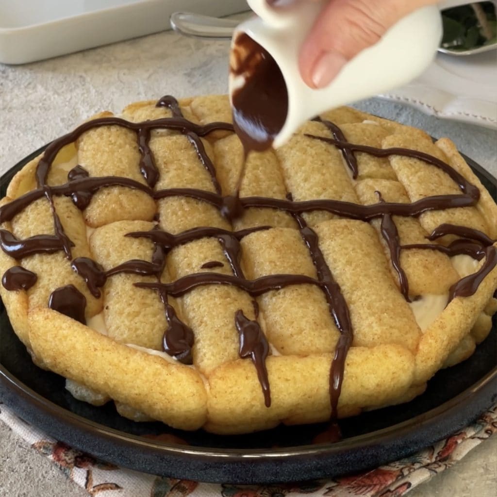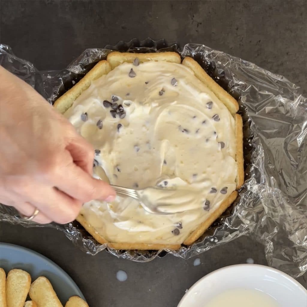 Bedecken Sie die Creme wieder mit Pavesini, die in Milch getaucht wurden,