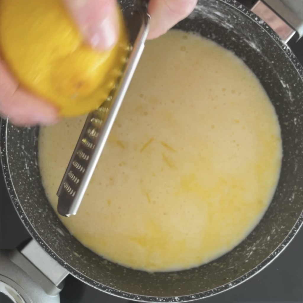 fügen Sie etwas geriebene Zitronenschale und eine Prise Salz hinzu, setzen Sie
