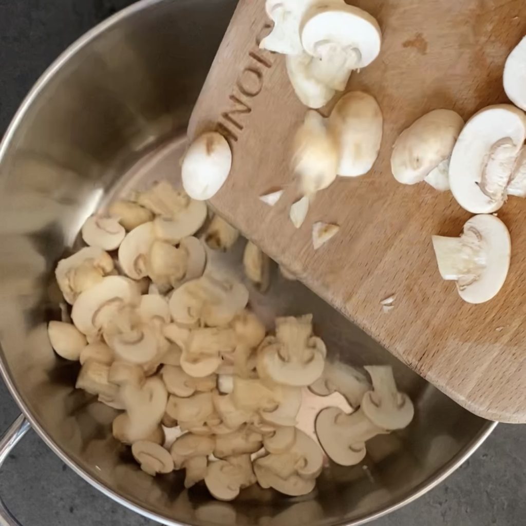 • die vorher gekochten Pilze,
