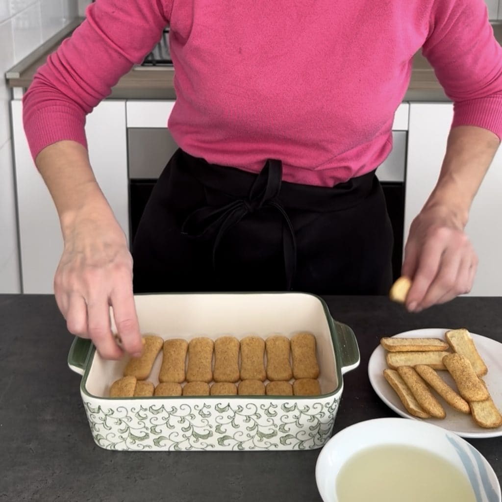 Legen Sie eine Schicht Pavesini auf das Backblech