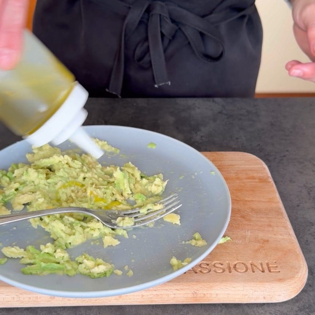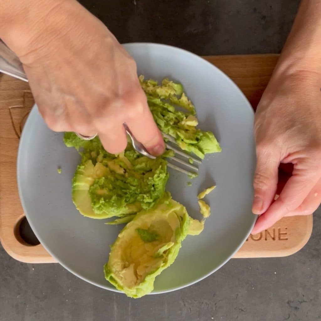 Drücken Sie das Avocadofruchtfleisch mit einer Gabel zu einer Creme,
