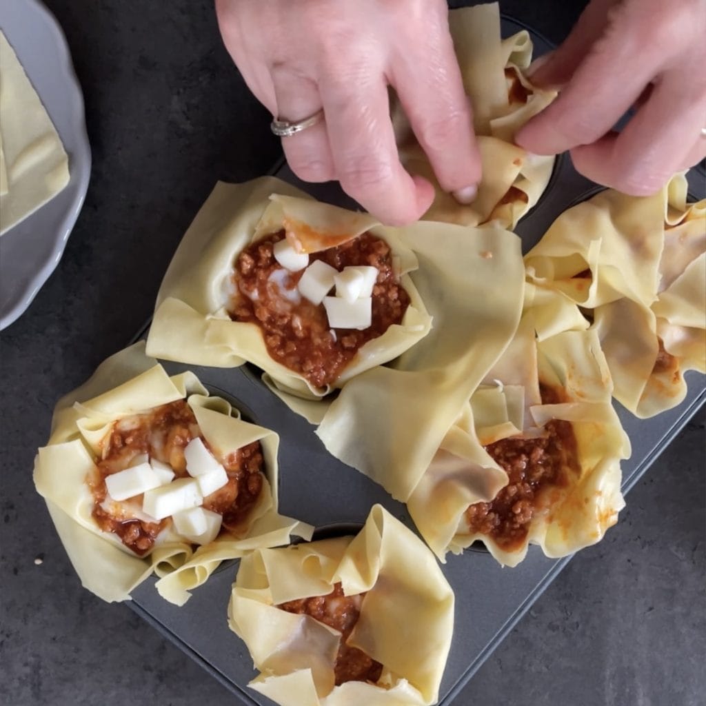 Zwei Teigblätter in die Muffinform legen und überlappen.