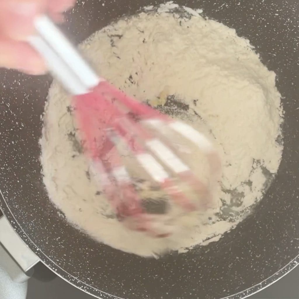 Das Mehl hinzufügen und rühren, bis eine homogene Masse entsteht.