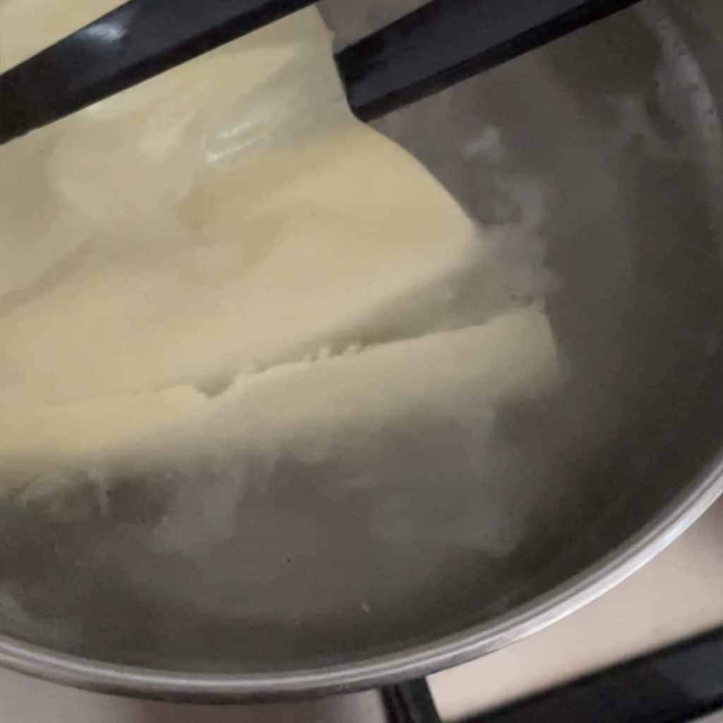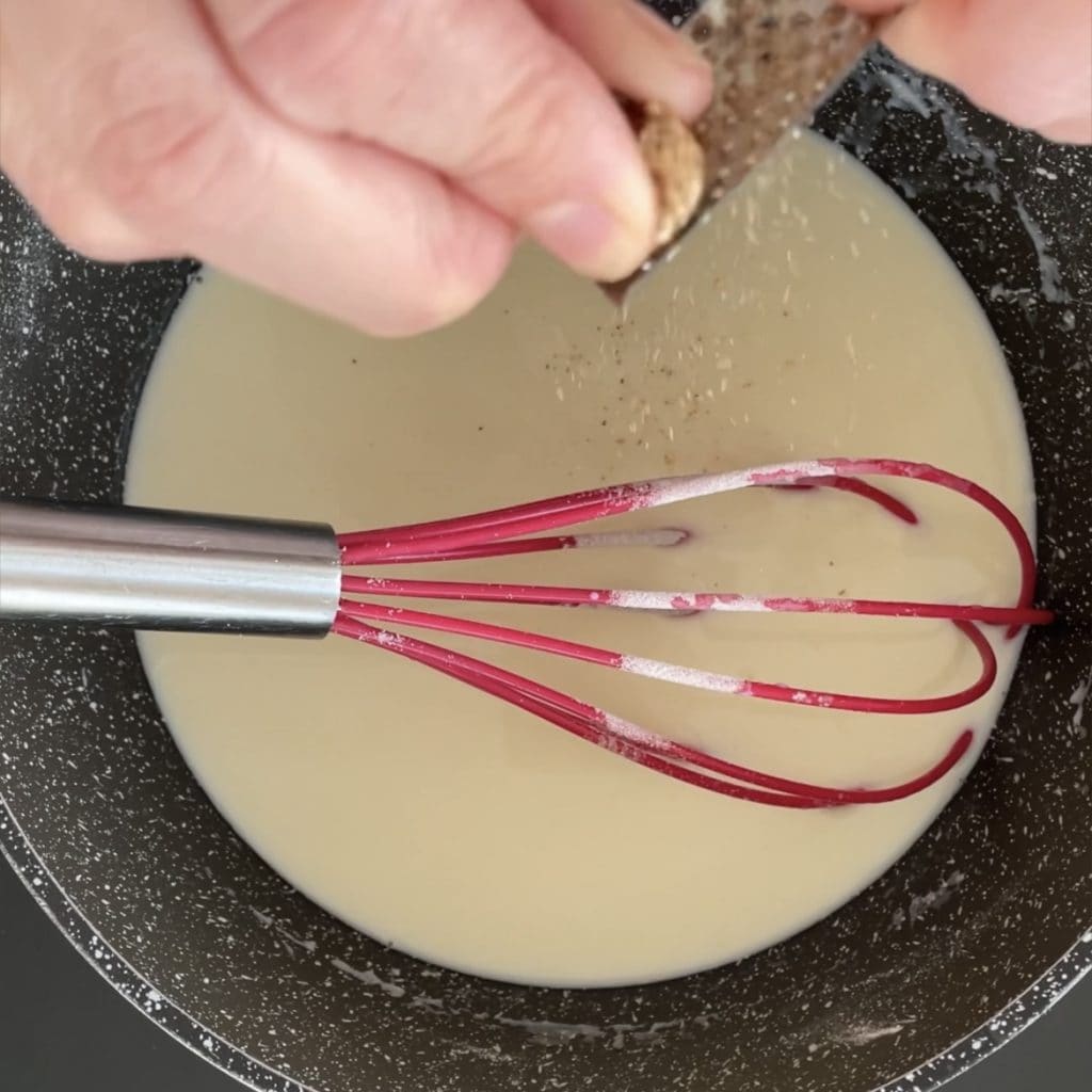 Auf den Herd stellen und zum Kochen bringen, du wirst sehen, dass die Béchamel eindickt.