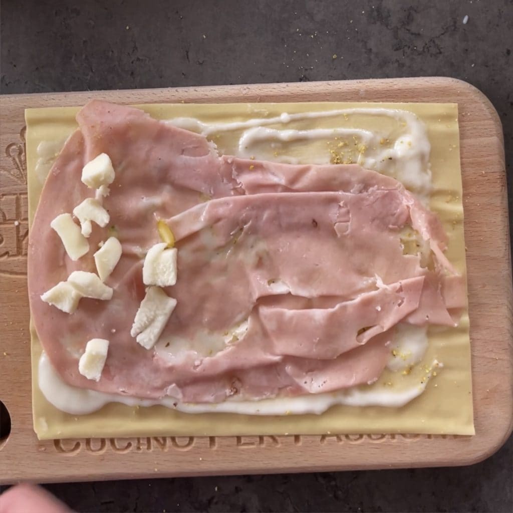Schneiden Sie die Lasagnerolle in 4 Teile und