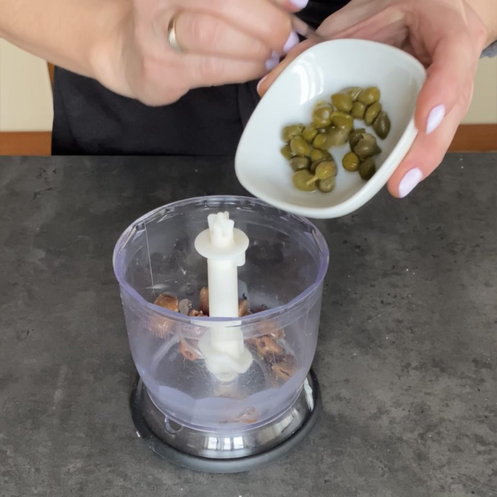 und mehr natives Olivenöl extra, falls nötig. Ich habe kein Salz hinzugefügt, da die Oliven und Kapern ausreichen, aber vielleicht probiert ihr es und passt es an, falls nötig.