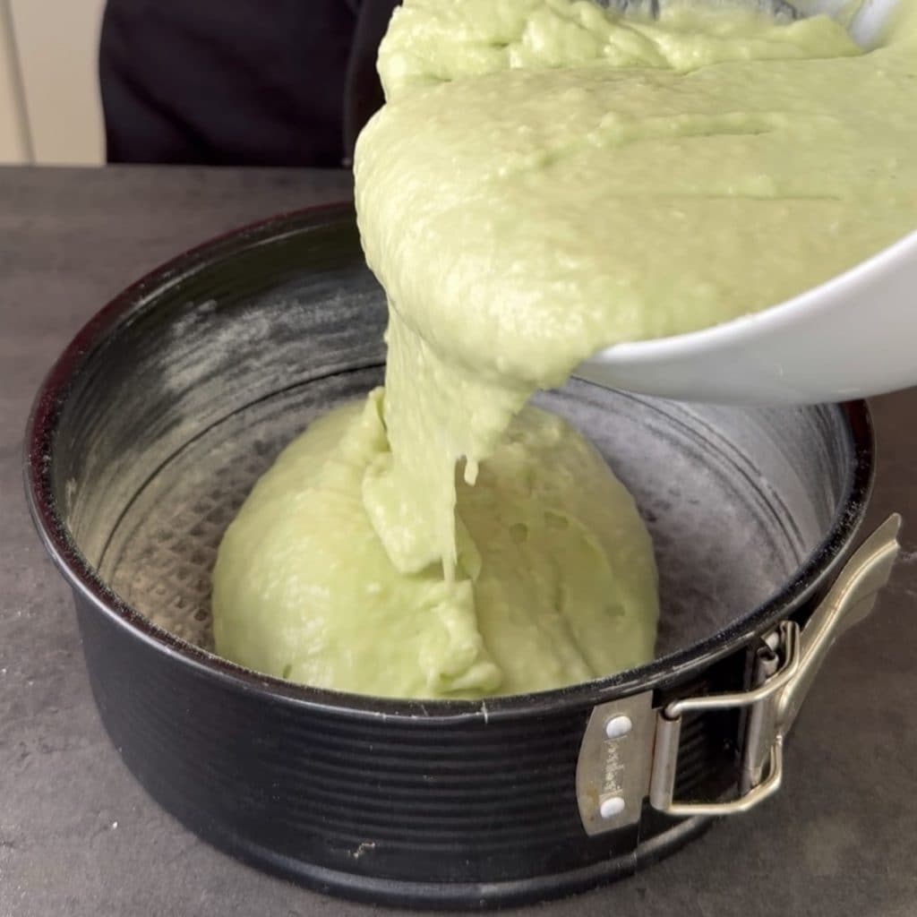 Gießen Sie die Masse in eine gefettete und bemehlte Kuchenform,