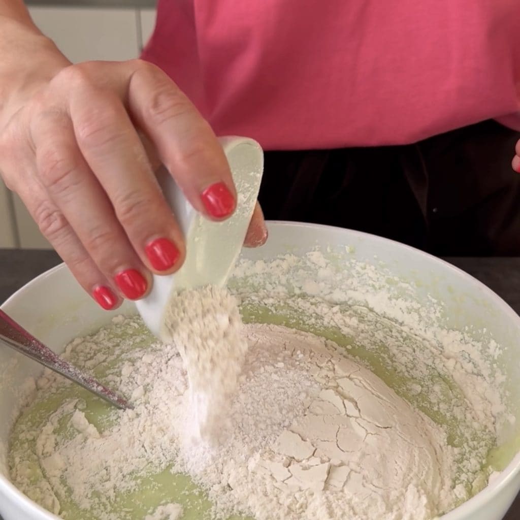 geben Sie das gesiebte Mehl dazu