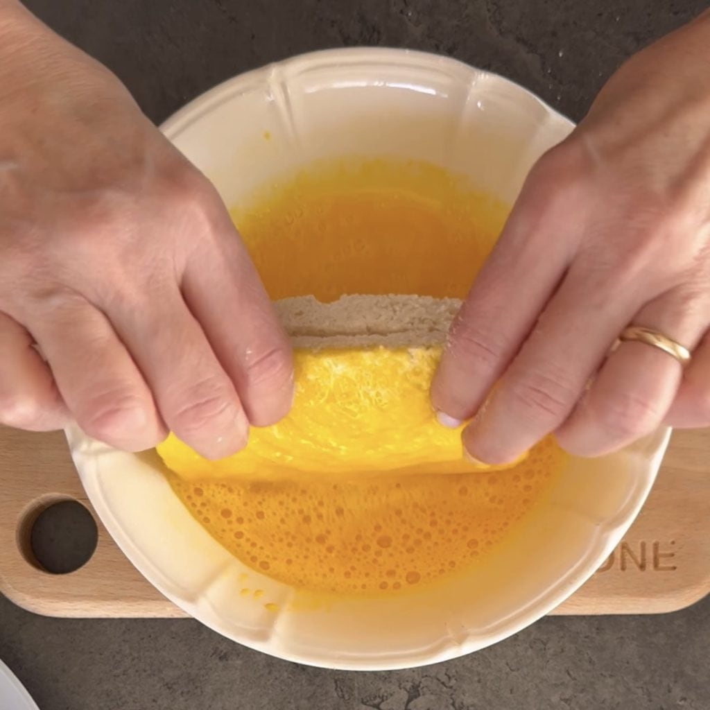 • decken Sie es mit einer weiteren Scheibe Weißbrot ab und drücken Sie die Ränder gut zusammen.