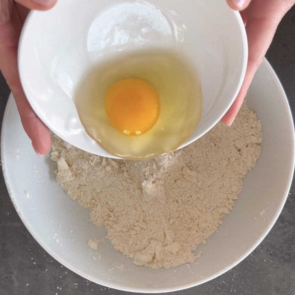 Jetzt das Ei hinzufügen und zuerst mit einer Gabel einarbeiten
