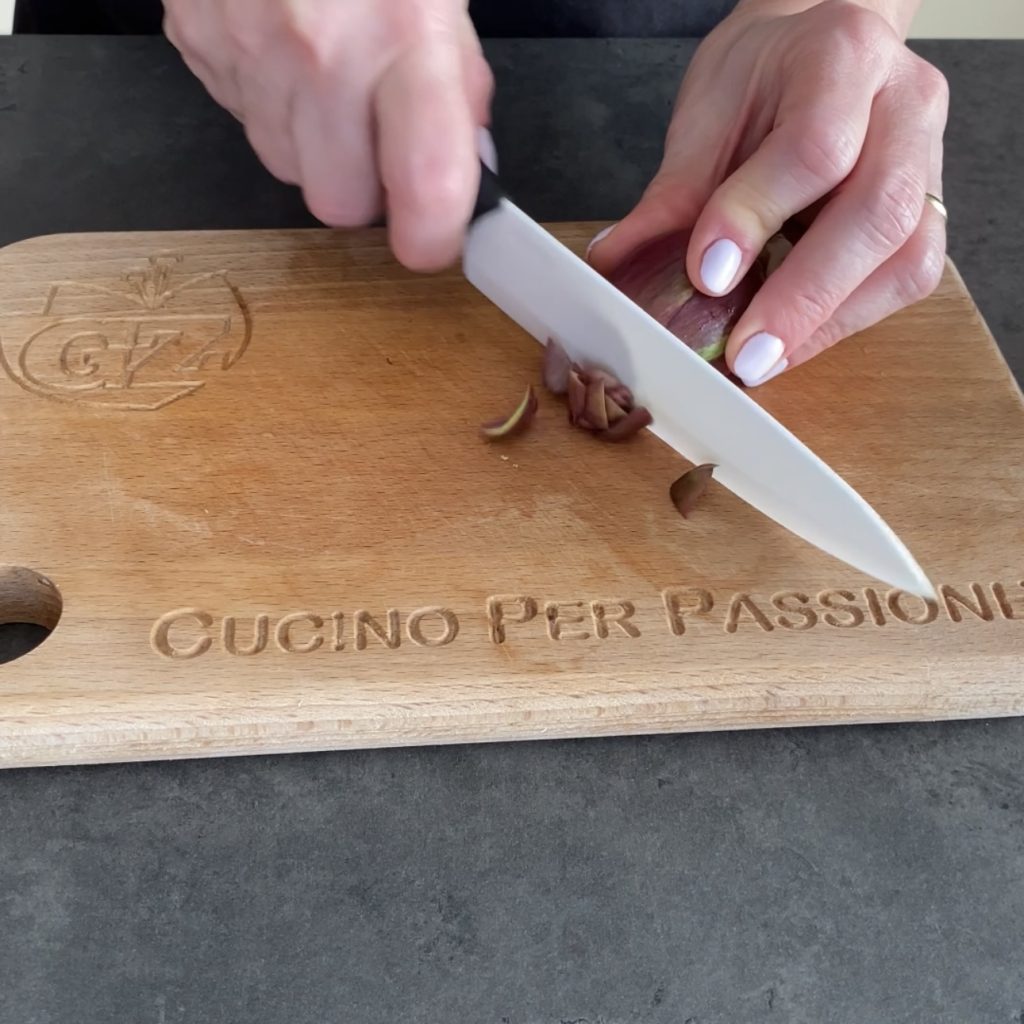 • In der Zwischenzeit säubern Sie die Artischocken, entfernen Sie den oberen Teil der Blätter