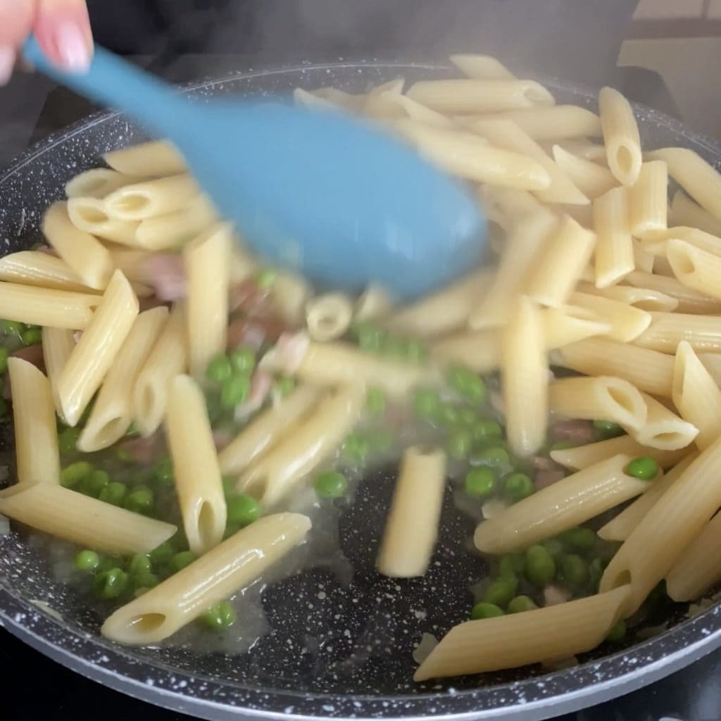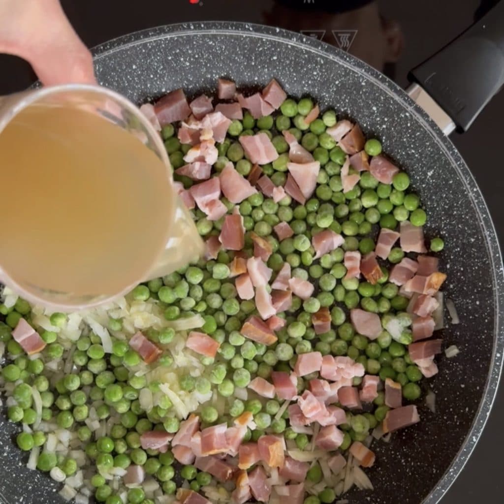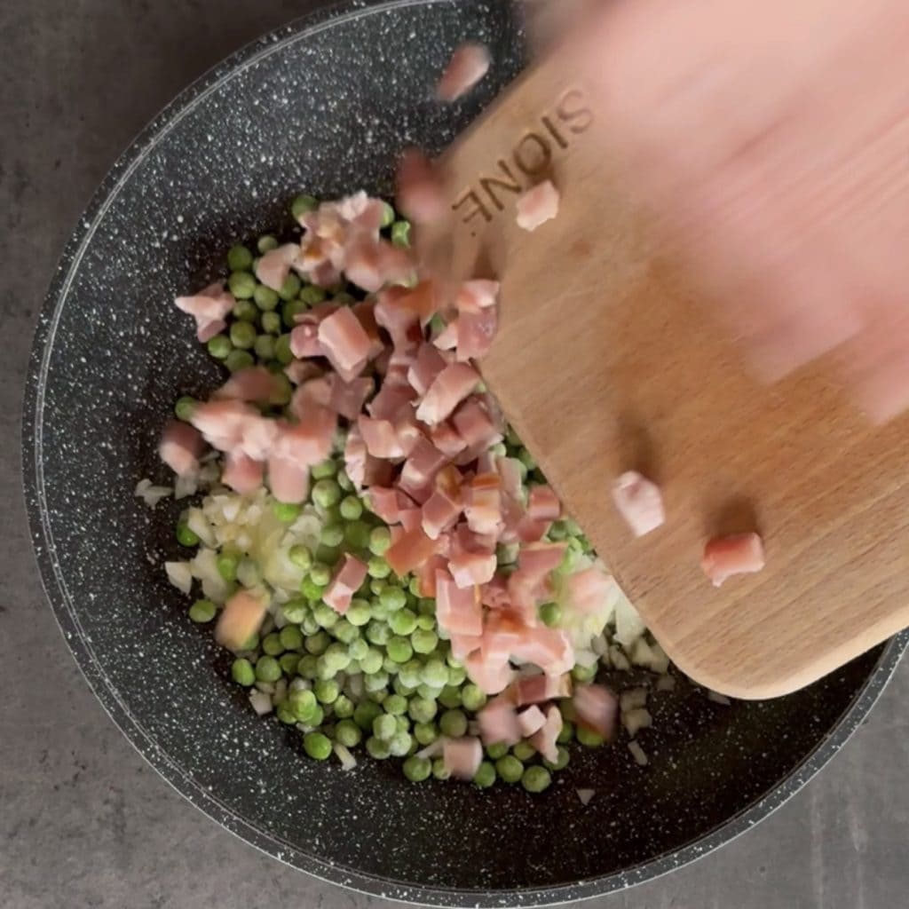 und gefrorene oder frische Erbsen hinzufügen, je nach Vorliebe.