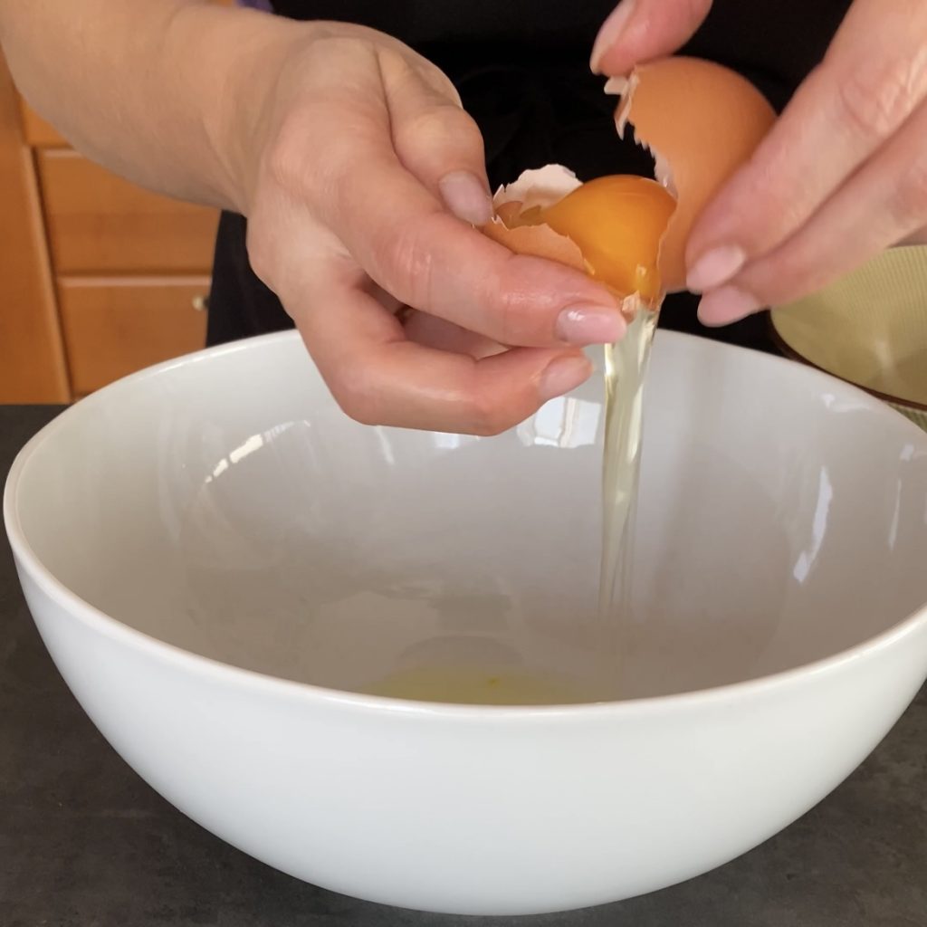 Beginnen wir mit der Zubereitung der Nutella-Küchlein, trennen Sie die Eier