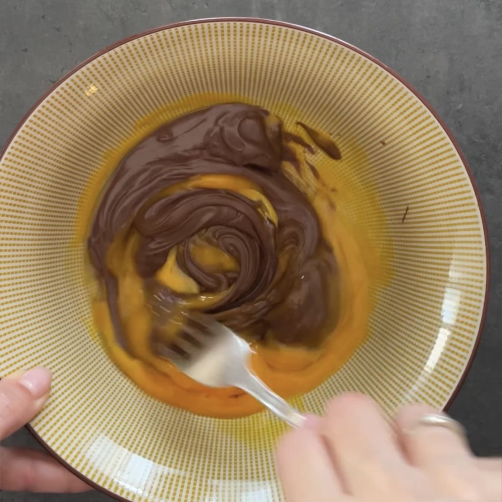 Geben Sie die Nutella in die Schüssel mit den Eigelben