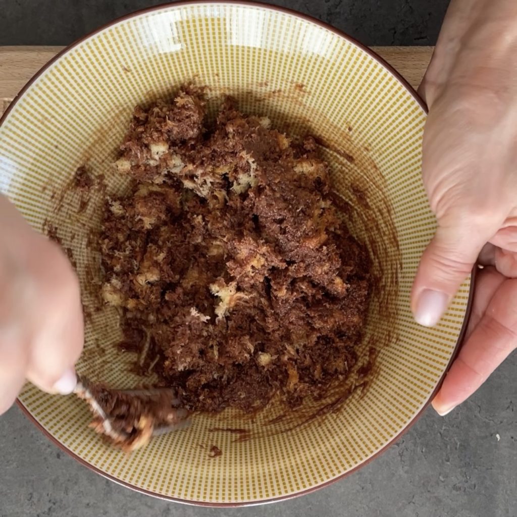 • fügen Sie die Nutella hinzu und mischen Sie sie mit dem Mascarpone.