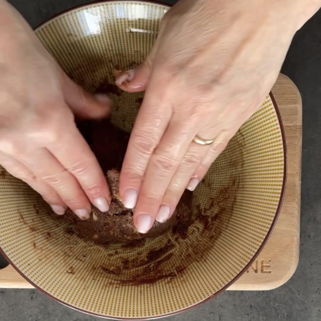 • und dann mit den Händen, um eine gleichmäßige und feste Masse zu erhalten.