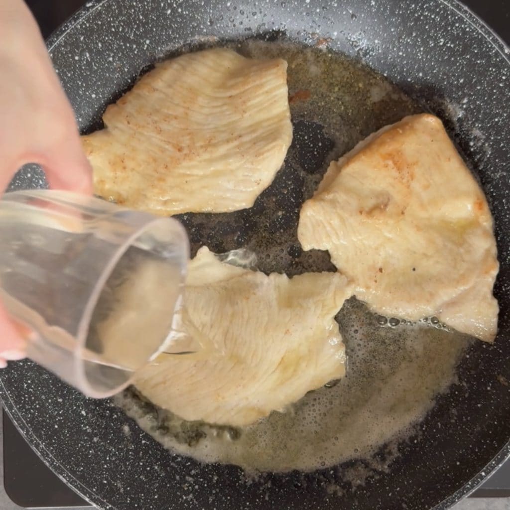 und geben Sie sie dann in die Pfanne mit den Putenfilets,