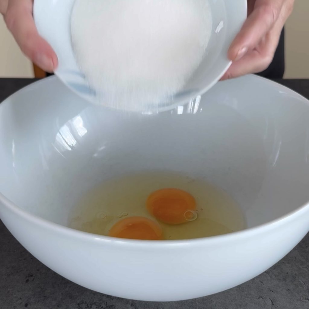 In eine Schüssel die Eier und den Zucker geben