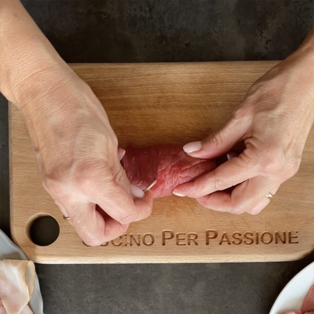 und fixieren Sie die Roulade mit einem Zahnstocher.