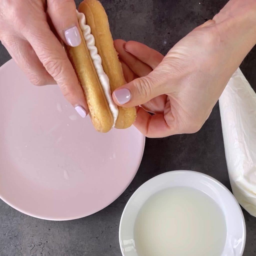 nehmen Sie einen Savoiardi und fügen Sie geschlagene Sahne hinzu,