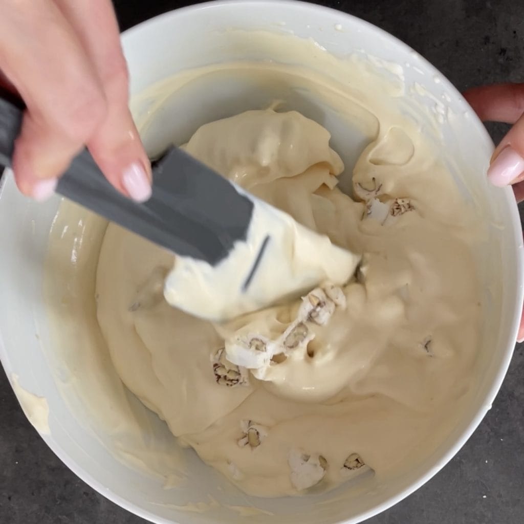 und fügen Sie dann die zuvor aufgeschlagene Sahne hinzu,
