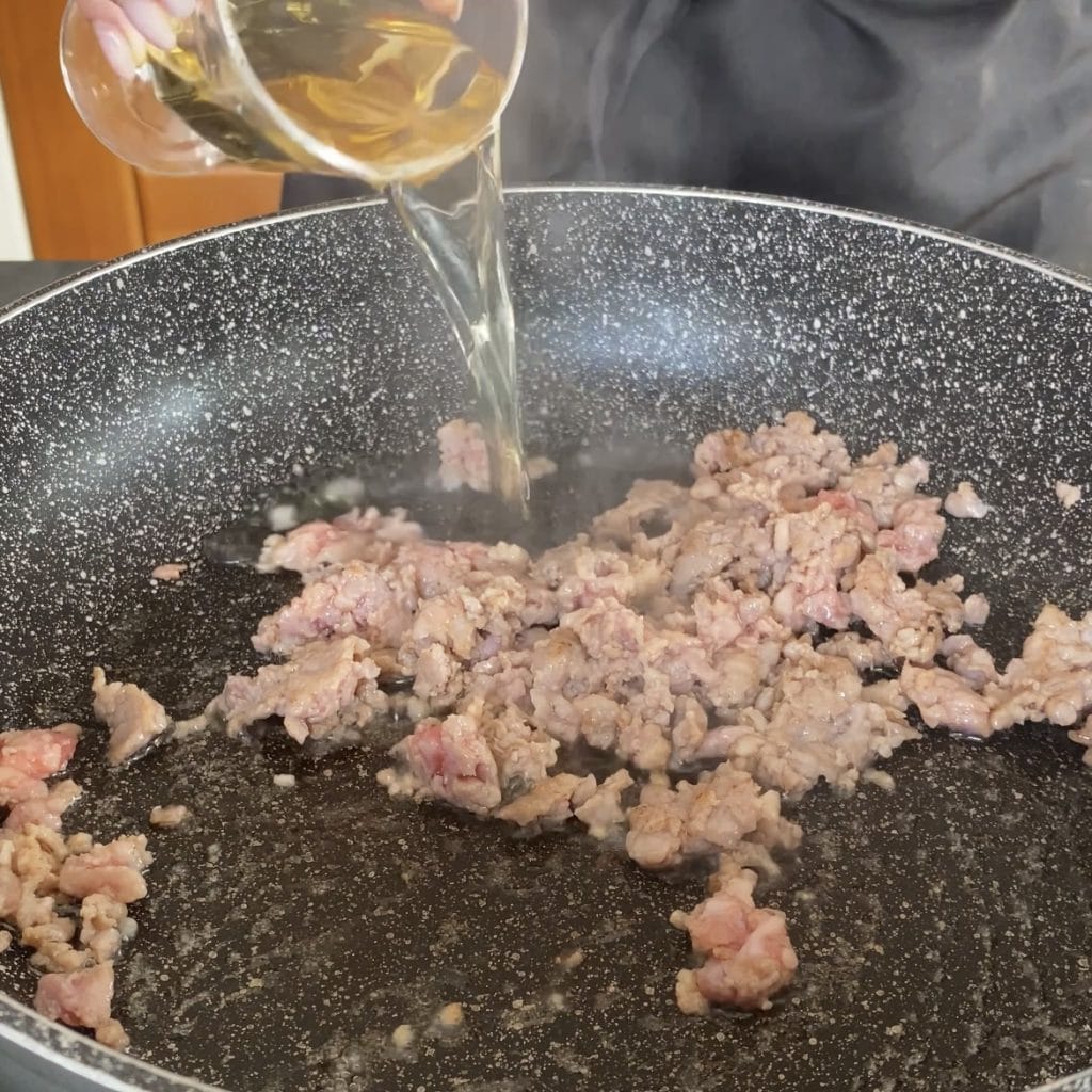 wenn es gut angebraten ist, löschen Sie es mit Weißwein ab und lassen Sie den Alkohol vollständig verdampfen.
