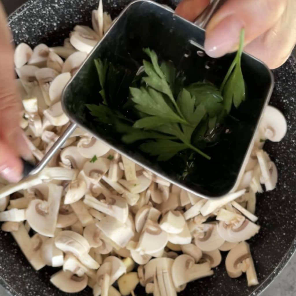und gehackte Petersilie. Lassen Sie sie 15 Minuten lang unter gelegentlichem Rühren kochen.
