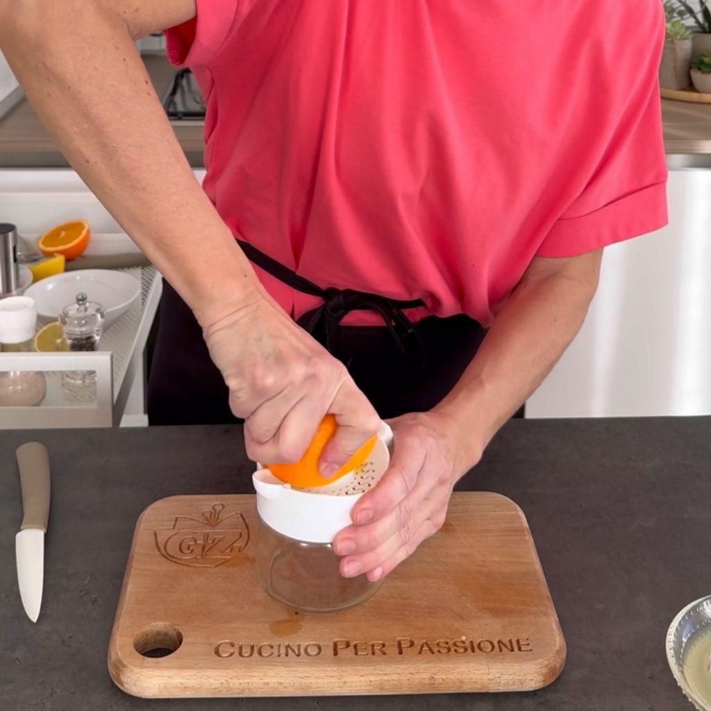 geben Sie dann den Orangensaft in eine kleine Schüssel,
