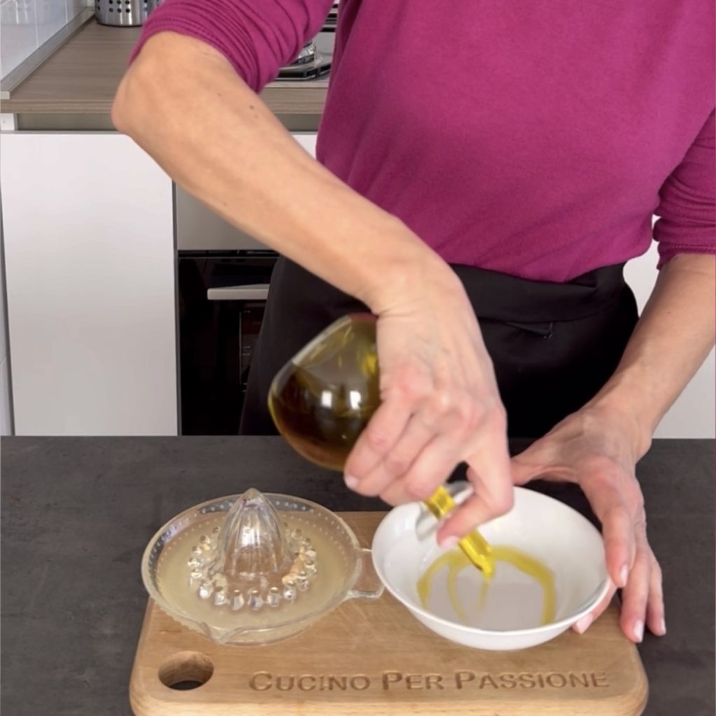• geben Sie etwas extra natives Olivenöl in eine Schüssel,