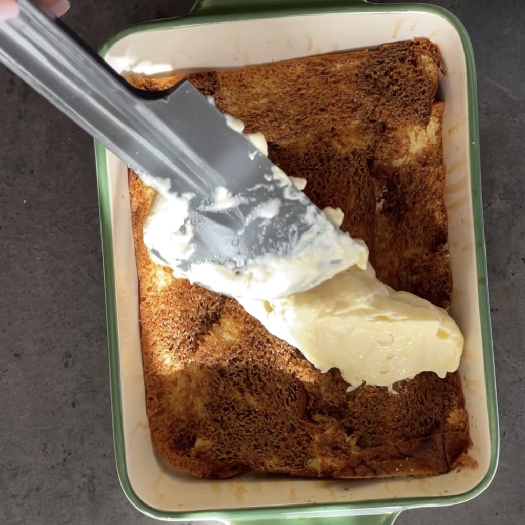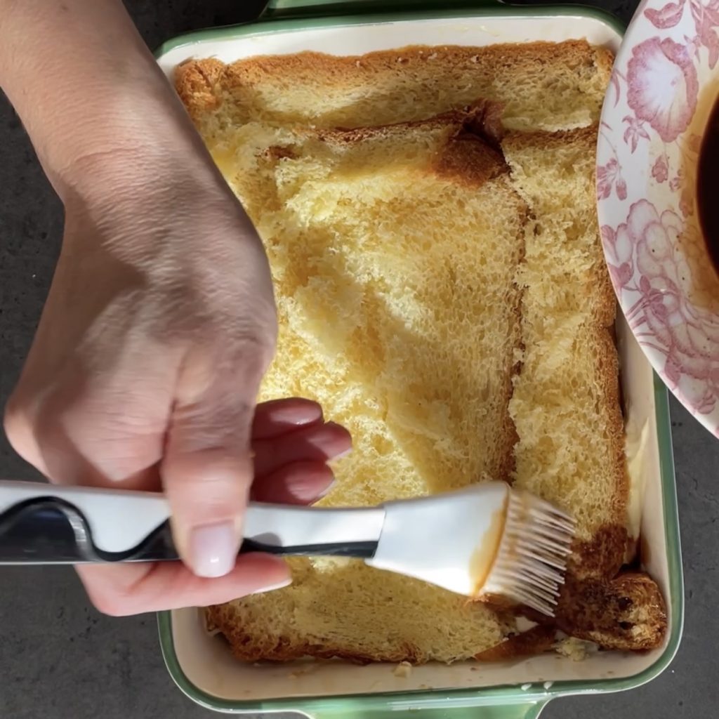 Machen Sie eine weitere Schicht Pandoro-Scheiben und befeuchten Sie sie erneut mit dem Kaffee,