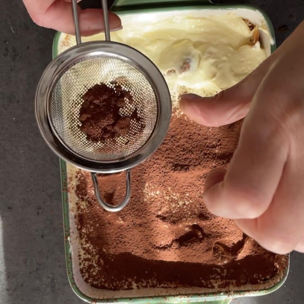 bestäuben Sie mit ungesüßtem Kakao und stellen Sie es vor dem Servieren mindestens 2 Stunden in den Kühlschrank.