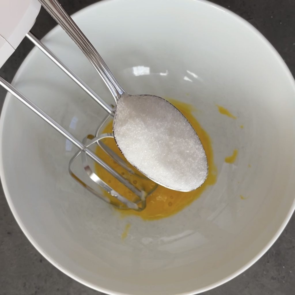 Geben Sie die Eigelbe in eine Schüssel und fügen Sie den Zucker hinzu,