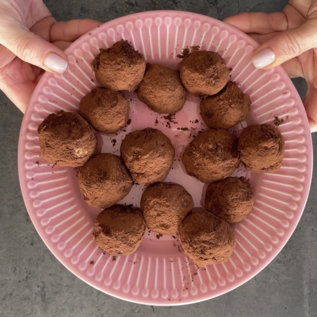 rollen Sie sie dann in ungesüßtem Kakaopulver,