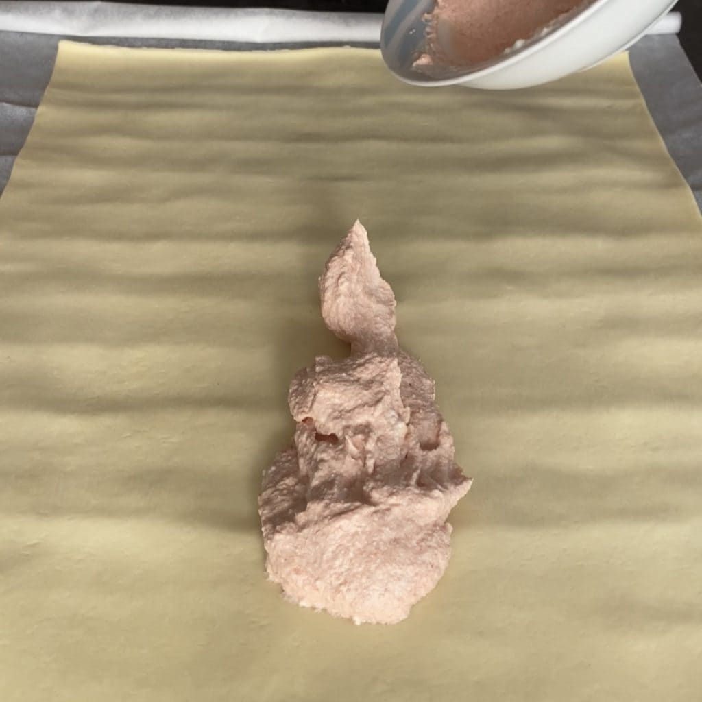 gut auf dem gesamten Blätterteig verteilen,