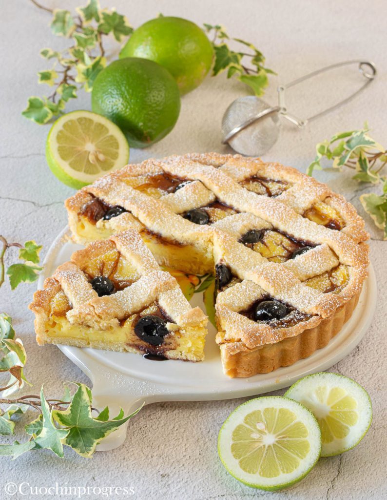 Jede Scheibe bietet die perfekte Balance aus der Knusprigkeit des Teigs, der Cremigkeit der Füllung und der fruchtigen Intensität der Amarenen – ein raffiniertes, aber einfaches Ergebnis, ideal für alle, die traditionelle Desserts mit dem gewissen Etwas lieben.