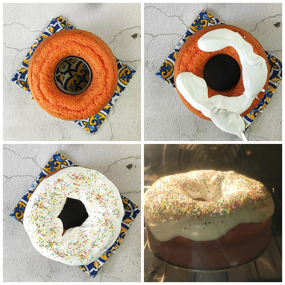 Die Oberfläche mit dem Baiser bestreichen und mit bunten Zuckerstreuseln bestreuen.