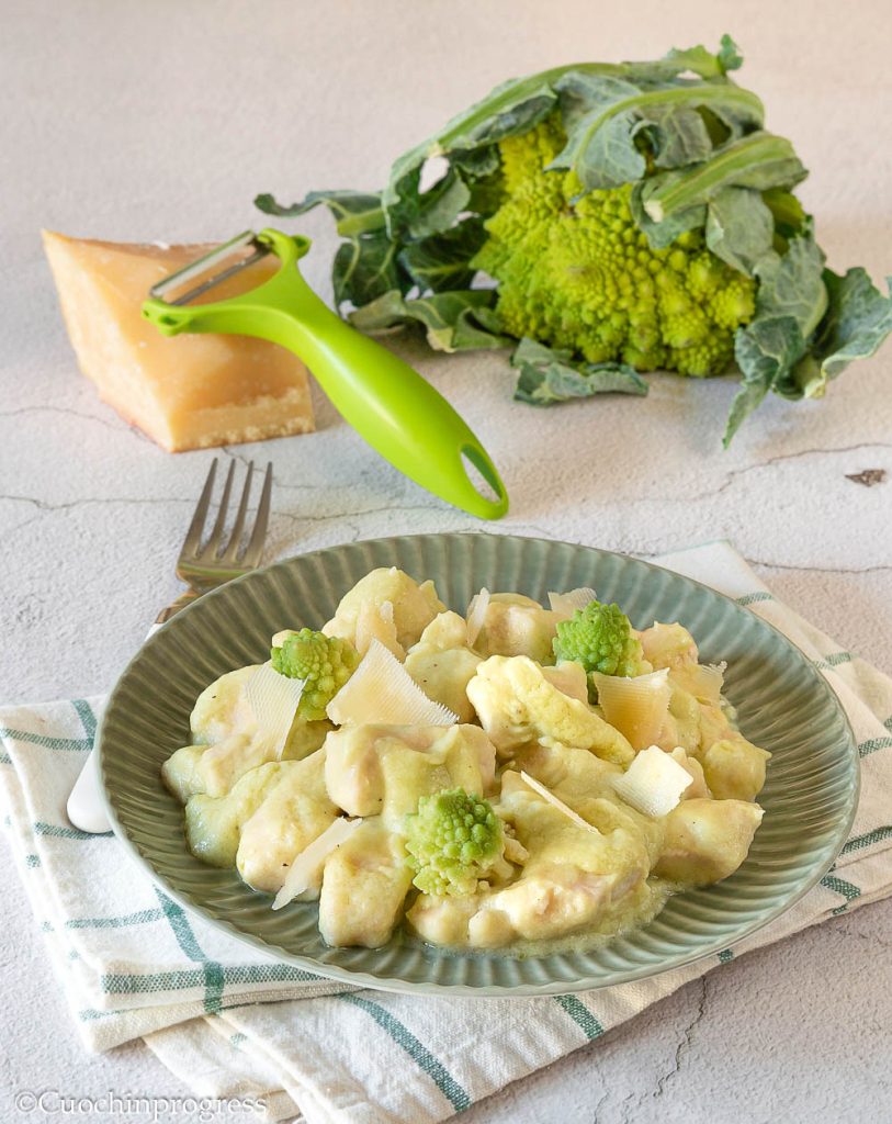 Das HÄHNCHEN MIT ROMANESCO-BROKKOLI UND GRANA ist ein unkompliziertes, schnelles und schmackhaftes Hauptgericht, das den zarten Geschmack vom Hähnchen mit der Cremigkeit der Romanesco-Brokkoli-Soße und dem kräftigen Charakter vom Grana verbindet. Dieses besonders cremige Hähnchen passt zu allen Gelegenheiten, von ganz zwanglosen bis zu etwas gehobeneren Anlässen.
