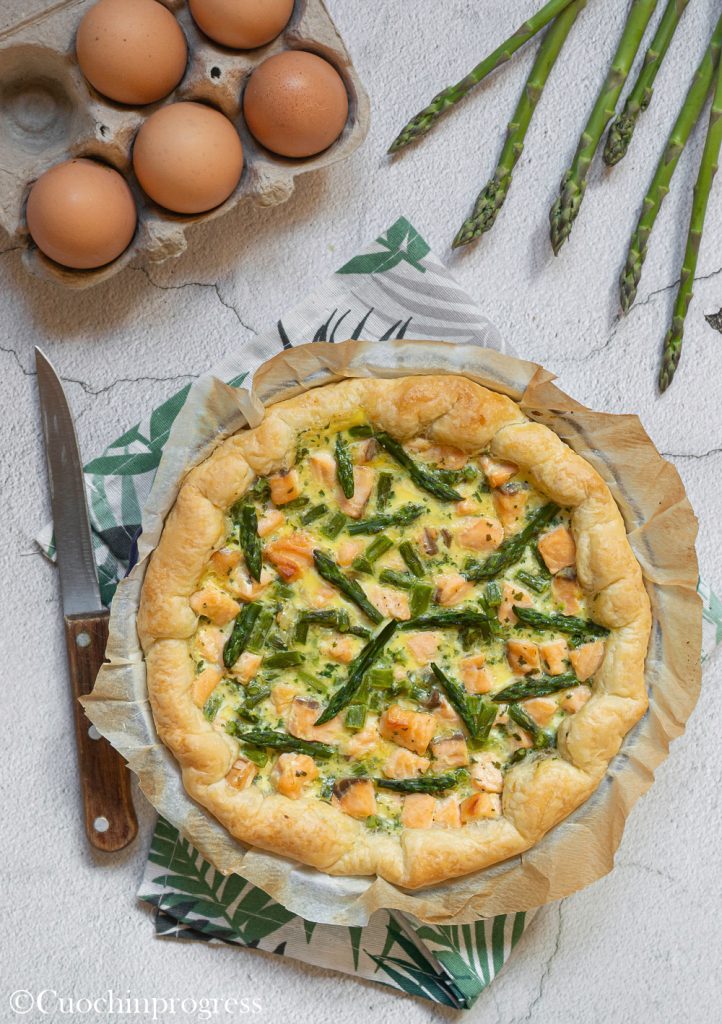 Die HERZHAFTE TARTE MIT SPARGEL UND LACHS ist eine zarte und köstliche herzhafte Tarte, die einfach und schnell zuzubereiten ist. Sie kann sowohl als Vorspeise bei einem festlichen Essen als auch als Hauptgericht serviert werden, gern mit einem saisonalen Salat. Auf jeden Fall ist sie ein rundes, leckeres Gericht, ideal auch für anspruchsvolle Gäste und würdig, ins Festtagsmenü aufgenommen zu werden, besonders zu Ostern oder im Frühling, wenn der Spargel am besten schmeckt.
