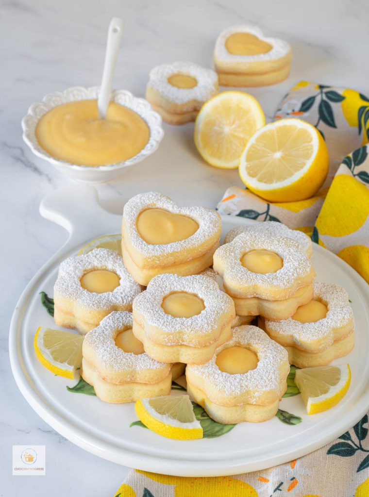 Der Lemon Curd, intensiv und strahlend, bringt eine lebhafte Note, die die Süße des Kekses auflockert und ein perfektes Spiel von Konsistenzen und Aromen erzeugt. Elegant in Form und Geschmack sind sie ideal als Abschluss eines Essens, zusammen mit einer Tasse heißem Tee oder einem Zitrus-Kräutertee.