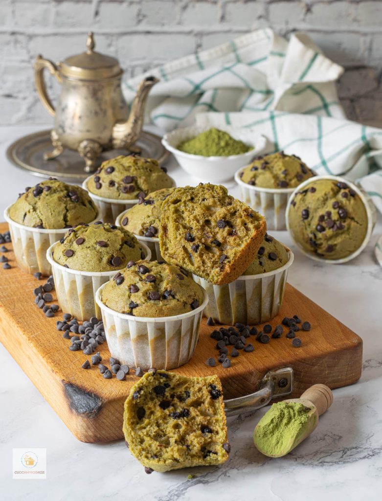 Die MATCHA‑TEE‑MUFFINS MIT SCHOKOLADE sind kleine, lockere und aromatische Küchlein, in denen sich der feine, leicht kräuterige Geschmack von Matcha mit der verführerischen Fülle von zartbitteren Schokotröpfchen verbindet. Ihre zarte grüne Farbe überzeugt schon auf den ersten Blick und kündigt einen ausgewogenen, überraschenden Geschmack an.
