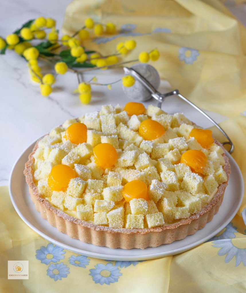 Die MIMOSA-TARTE ist ein raffiniertes und zartes Dessert, das die Knusprigkeit des Mürbeteigs mit der cremigen Umhüllung der Vanillecreme verbindet, veredelt durch die typischen Würfel, die an die kleinen gelben Mimoseblüten erinnern. Ein optisch eindrucksvoller, dabei jedoch einfacher Nachtisch, der Eleganz und Süße auf den Tisch bringt.