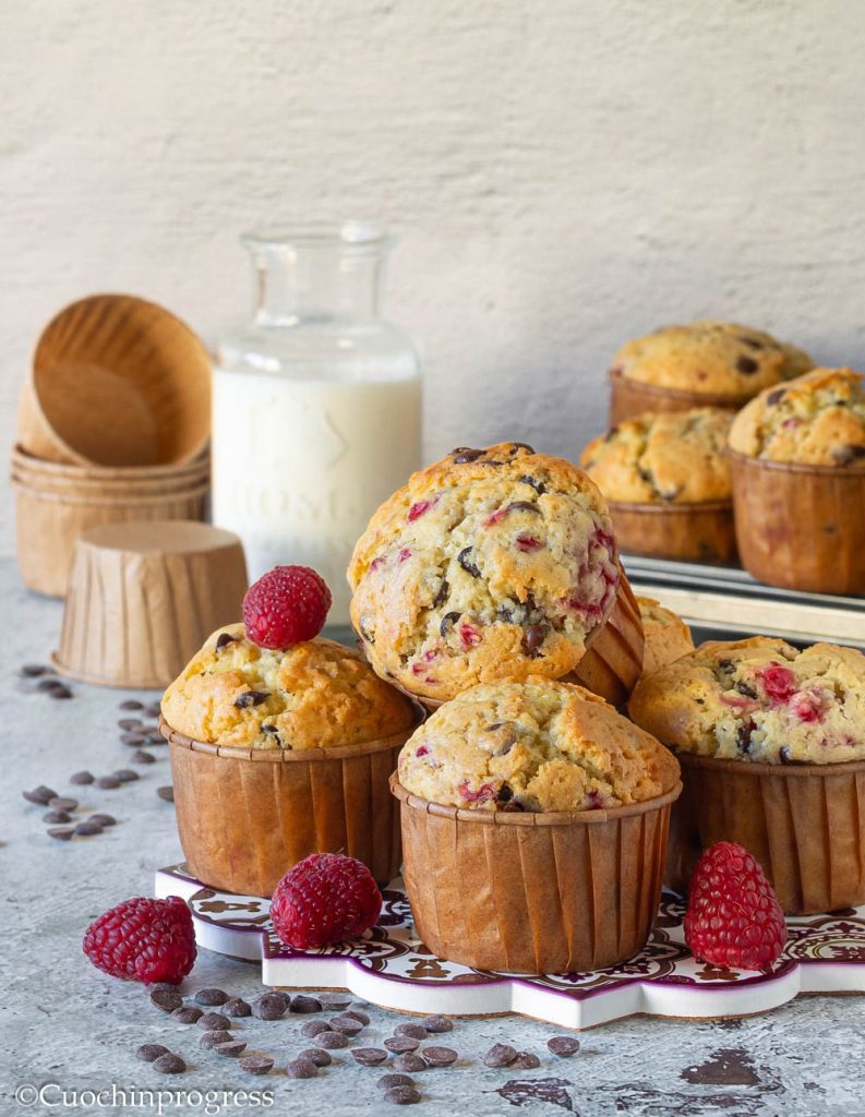 Schon beim ersten Bissen verwöhnt die Süße der Schokolade unseren Gaumen, während die säuerliche, aromatische Note der Himbeeren ihn reinigt und auf den nächsten Biss vorbereitet. Kurz gesagt: eine echte Symphonie. Die Zubereitung dieser Muffins ist außerdem ganz unkompliziert, vor allem wenn Sie genau den Fotorezept-Schritten folgen, die ich Ihnen hier zeige.