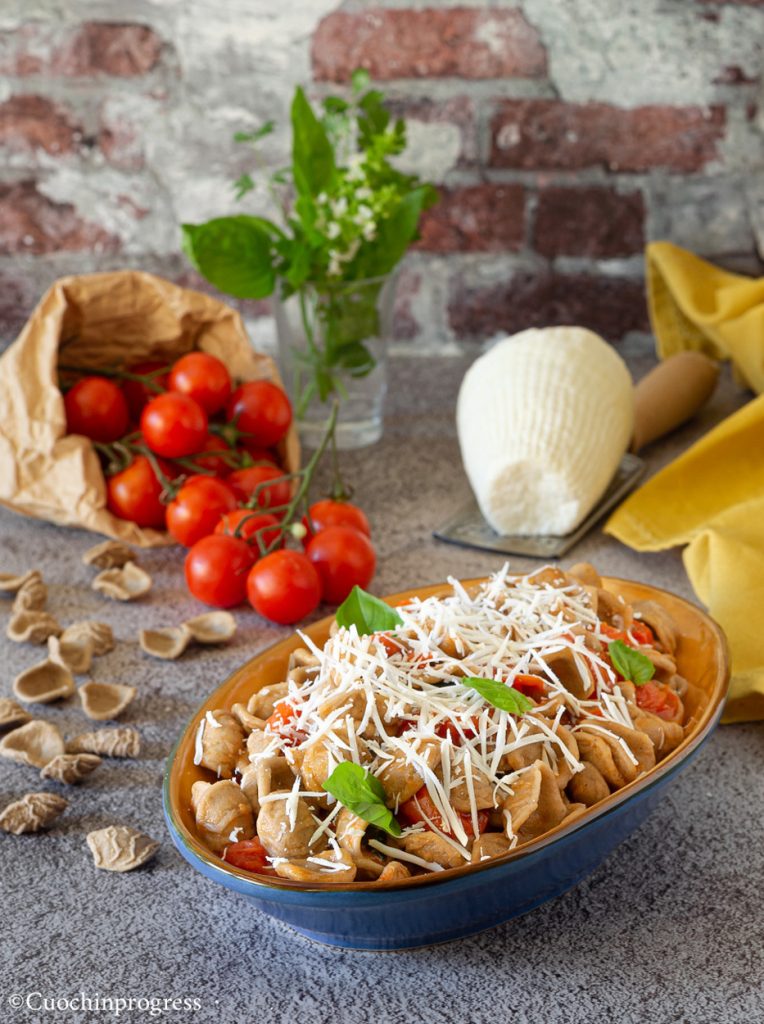 Orecchiette aus Grano Arso mit Tomaten und gesalzener Ricotta