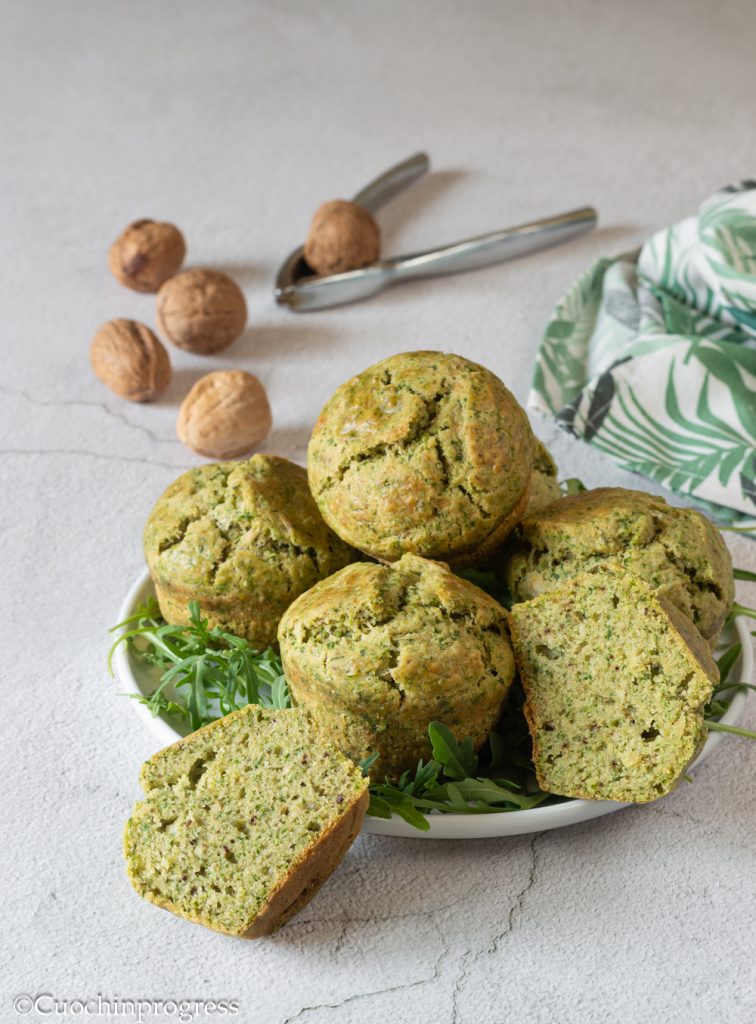 Die Rucola-Walnuss-Muffins sind wunderbar fluffig, im Handumdrehen fertig und verschwinden genauso schnell, wenn man nicht aufpasst. Zubereitet mit einem unbedingt selbstgemachten Rucola-Pesto und Walnüssen sind sie ideal zur Aperitif-Zeit, zusammen mit einem guten Glas Wein sowie Käse oder Aufschnitt.