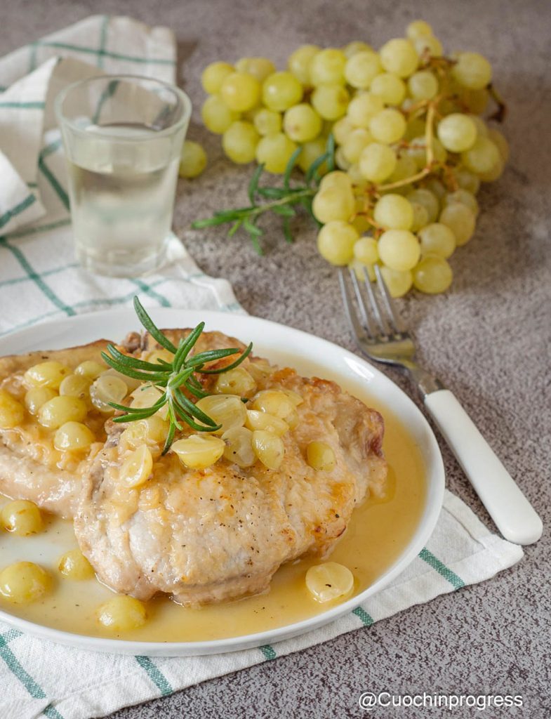 Das Kotelett ist ein klassischer Schweinefleischschnitt, bleibt aber nur dann zart und schmackhaft, wenn es richtig zubereitet wird – also gut durchgebraten, ohne zäh zu werden. Außerdem braucht es eine Sauce als Begleitung; die aromatische, süße Note der Trauben passt dafür ausgezeichnet, zusammen mit dem kräftigen Duft des Rosmarins, der zu Schweinefleisch immer ideal ist.