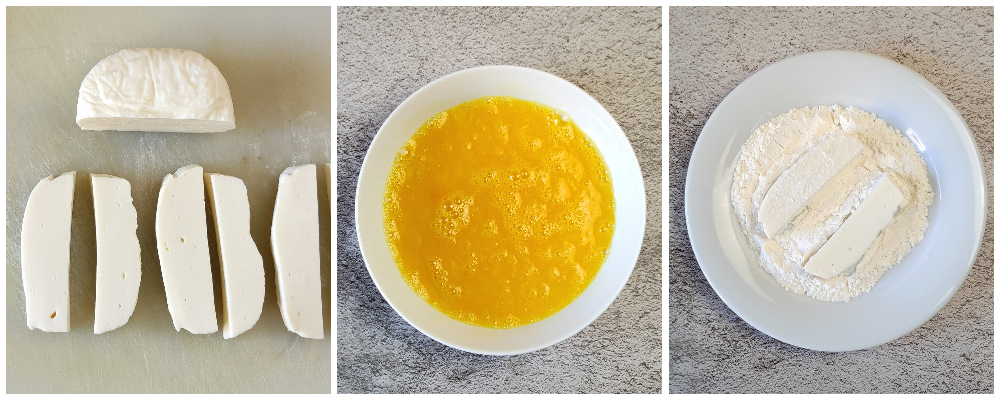 Schlagen Sie die Eier auf und salzen Sie sie leicht. Schneiden Sie die Mozzarella in Stifte und mehlen Sie diese leicht. Wenden Sie die Stifte zuerst im Ei und anschließend im Paniermehl. Wenn Sie frischen Fior-di-Latte-Mozzarella verwenden, tupfen Sie ihn nach dem Schneiden gut ab, um so viel Flüssigkeit wie möglich zu entfernen.