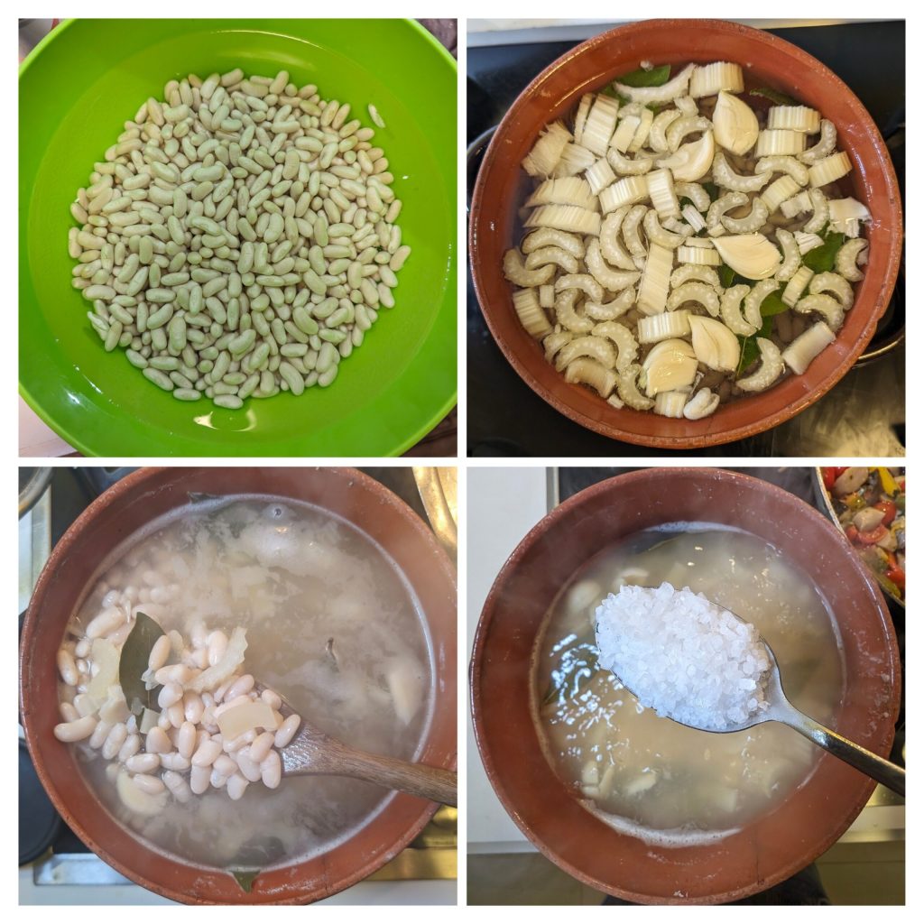 • Wenn du getrocknete Bohnen verwendest, lasse sie für 12 Stunden einweichen und koche sie in Wasser mit Sellerie, Lorbeer und einer Knoblauchzehe. Auf diese Weise bewahrst du den natürlichen Geschmack der Bohnen. Füge Salz und Öl erst am Ende der Kochzeit hinzu. Um mehr über die Kochtechnik zu erfahren, hier der Link zum natürlichen Kochen von getrockneten Bohnen.