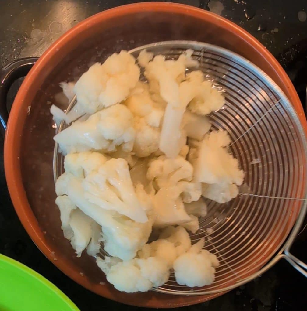 Um zu verhindern, dass der Blumenkohl zerfällt, koche ihn nicht zu lange. Blanchiere ihn in kochendem Salzwasser für 8-10 Minuten, bis er zart, aber noch leicht knackig ist.