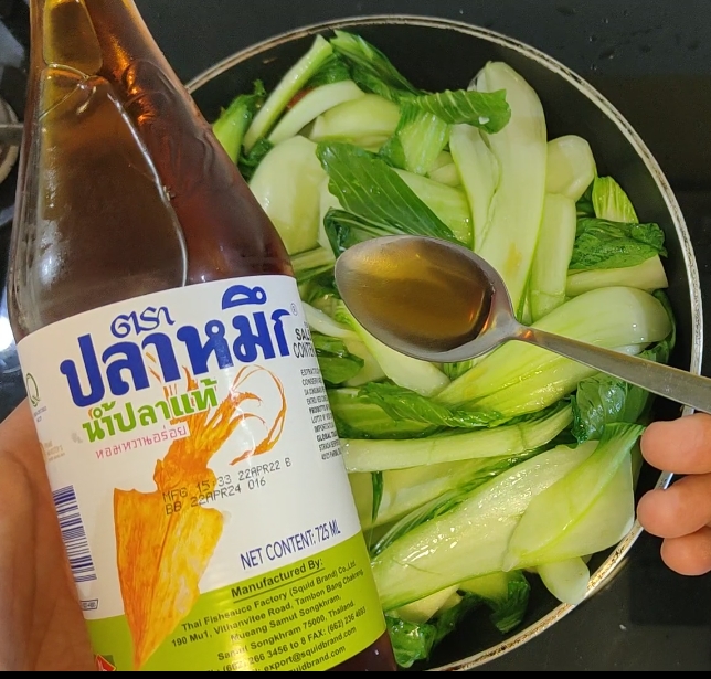 • Dann habe ich die Fischsauce hinzugefügt, um alles zu würzen, aber wenn Sie sie nicht mögen oder wenn Sie sie in Ihrer Region nicht finden können, können Sie jede andere Flüssigkeit wie Sojasauce, Weißwein, Bier, Brühe oder auch Wasser!