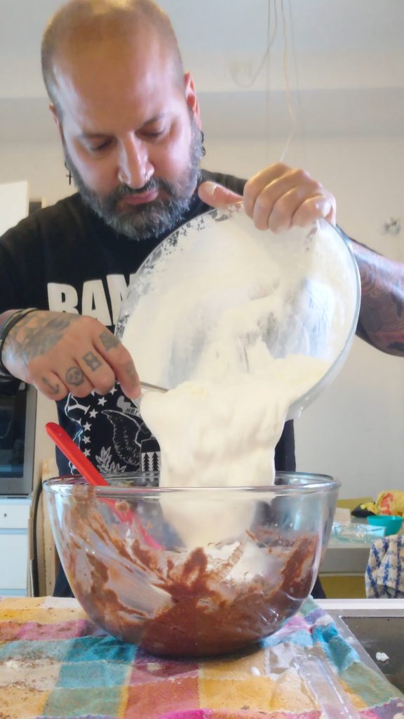 Hebe vorsichtig die geschlagene Sahne unter die Ricotta-Nutella-Zucker-Mischung, indem du einen Spatel benutzt und langsame Bewegungen von unten nach oben machst, um die Sahne nicht zu entlüften und die Creme luftig zu halten.